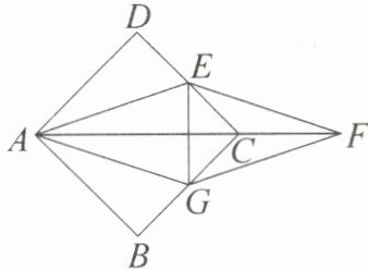 6. 新考向 情境题·制作风筝 如图是小明自制的风筝框架示意图,在正方形框架 $ABCD$ 和平行四边形框架 $AEFG$ 中,$E$,$G$ 恰好分别是 $CD$,$BC$ 的中点,连接 $EG$,点 $A$,$C$,$F$ 在同一条直线上。