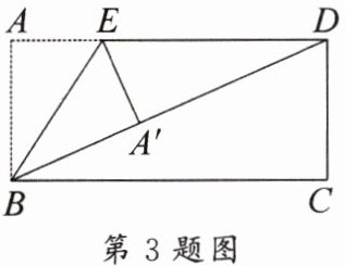 3. 如图,将矩形纸片ABCD沿BE折叠,使点A落在对角线BD上的点A'处。若∠DBC = 24°,则∠A'EB的度数为( )