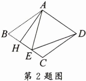 2. 如图,把菱形ABCD沿直线AH折叠,使点B落在BC边上的点E处,连接DE。若∠BAE = 40°,则∠CDE的度数为(