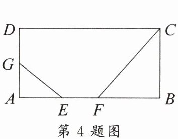 4. 如图,在矩形 $ABCD$ 中,$AB = 4$,$BC = 2$,$G$是 $AD$ 的中点,线段 $EF$ 在边 $AB$ 上左右滑动。若 $EF = 1$,则 $GE + CF$ 的最小值为