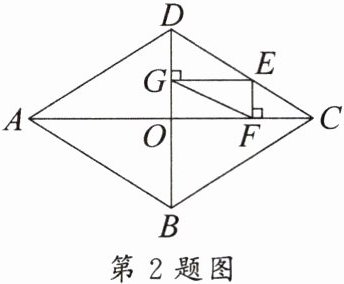 2. [2024·驻马店正阳县期末]如图,四边形 $ABCD$ 是菱形,$BD = 6$,$AD = 5$,$E$ 是 $CD$ 边上的一个动点,过点 $E$ 分别作 $EF \perp OC$ 于点 $F$,$EG \perp OD$ 于点 $G$,连接 $FG$,则 $FG$ 的最小值为