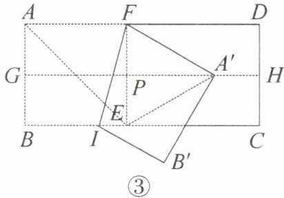 (2)小李说,在小张折出正方形 $ ABEF $ 后,将矩形纸片上下对折,再把纸片展开,折痕为 $ GH $,$ GH $ 与 $ EF $ 交于点 $ P $,过点 $ F $ 沿 $ IF $ 折叠四边形 $ ABIF $,使点 $ A $ 的对应点 $ A' $ 落在 $ GH $ 上,连接 $ A'E $,如图③,这样也可得到 $ 30^{\circ} $ 的角.请你直接写出一个 $ 30^{\circ} $ 的角.