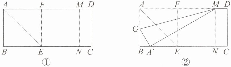 第二步:如图②,过点 $ M $ 沿 $ GM $ 翻折,使点 $ A $ 落在 $ BC $ 上,对应点为 $ A' $.