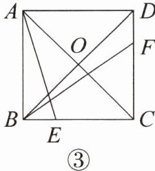 ;②如图③,在边长为$1的正方形ABCD$中,$E$,$F分别是边BC$,$CD$上的动点,连接$AE$,$BF$,若$BE = DF$,求$AE + BF$的最小值。