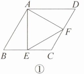 15. 新考向 类比探究在菱形$ABCD$中,$\angle B = 60^{\circ}$,点$E在BC$边上,点$F在CD$边上,连接$AE$,$AF$,$EF$。