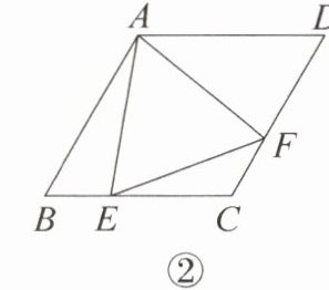 (2)如图②,若$\angle EAF = 60^{\circ}$,则$\triangle AEF$是什么特殊的三角形?并证明。