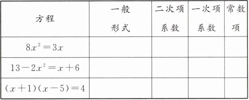 (从左至右,从上至下)8x²-3x=0 8 -3 0