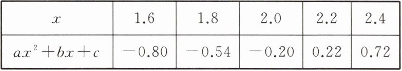 4. 下列表格是 $x$ 与 $ax^{2}+bx + c$ 的五组对应值,若 $x_{1}$ 是方程 $ax^{2}+bx + c = 0$ 的一个解,且 $x_{1}>1.6$,则下列选项中正确的是(