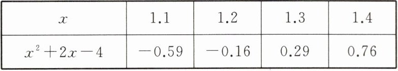 5. 在确定一元二次方程 $x^{2}+2x - 4 = 0$ 的近似解时,小明所在的小组采用了赋值法,计算结果如表: