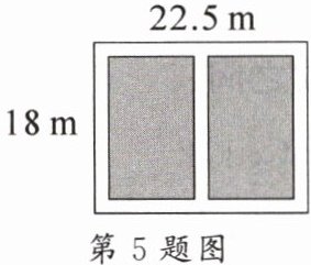 5. 如图,某会展中心有一块长为 22.5 m,宽为 18 m 的矩形展区,该展区内有两块全等的矩形展位,它们的面积之和为$ 270 m^2,$空白部分为宽度相等的人行通道,则人行通道的宽度为