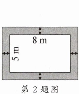 2. 为了增加游客的游玩项目,该公司准备在农庄里一块如图所示的长 8 m、宽 5 m 的矩形池塘四周修建宽度相等的垂钓区,使得池塘和垂钓区的总面积为 70 m²,则垂钓区的宽度应为