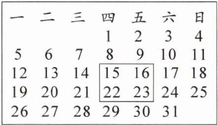 2. 如图,在某月的月历表上可以用一个方框圈出 4 个数,若圈出的四个数中,最小数与最大数的乘积为 65,则这个最小数是