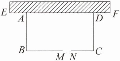 9. 如图,某公园准备围建一个矩形花园 $ ABCD $,其中一边靠墙,其他三边用长为 $ 54\ m $ 的篱笆围成,已知墙 $ EF $ 的长为 $ 28\ m $,并且与墙平行的一边 $ BC $ 上要预留 $ 2\ m $ 宽的入口 $ MN $(不用围篱笆)。若花园的面积为 $ 320\ m^{2} $,则 $ AB = $