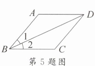 5. 如图,在 $□ ABCD$ 中,$\angle 1 = \angle 2$,$AB = 3$,则四边形 $ABCD$ 的周长为(