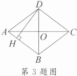 3. 如图,四边形 $ABCD$ 是菱形,$AC$ 与 $BD$ 相交于点 $O$,$OA = 4$,$OD = 3$,$DH \perp AB$ 于点 $H$,则 $DH = $