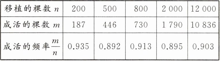 2. 某种苹果树苗在一定条件下移植成活的情况记录如下表,由此估计这种苹果树苗移植成活的概率(精确到 0.01)为(