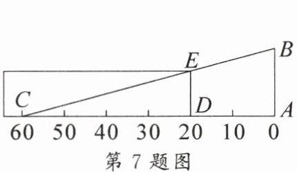 7. 如图,△ABC是测量小玻璃管内径的量具,AB的长为18mm,AC被分为60等份。如果小玻璃管口DE正好对着量具上20等份处(点D,E分别在AC,BC上,且DE//AB),那么小玻璃管内径DE的长为(