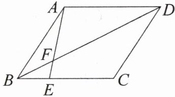 9. 如图,在 $□ ABCD$ 中,$E$ 是边 $BC$ 上一点,且 $BE = \frac{1}{2}CE$,连接 $AE$ 与对角线 $BD$ 相交于点 $F$。