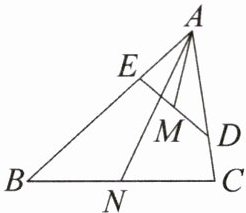 7. 如图,点 $D$,$E$ 分别在 $\triangle ABC$ 的边 $AC$,$AB$ 上,$\triangle ADE \backsim \triangle ABC$,$M$,$N$ 分别是 $DE$,$BC$ 的中点。若 $\frac{AM}{AN} = \frac{2}{5}$,则 $\frac{S_{\triangle ADE}}{S_{\triangle ABC}} = $