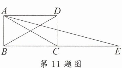 11. 如图,延长矩形$ABCD的边BC至点E$,使$CE = BD$,连接$AC$,$AE$.若$∠ADB = 30^{\circ}$,则$∠E$的度数为