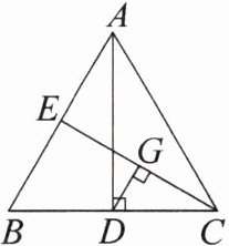 2. 如图,在$\triangle ABC$中,$AD$是高,$CE$是中线,$DC = BE$,$DG \perp CE于点G$。