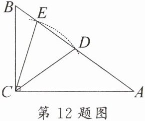 12. 新考向 尺规作图 [2025·苏州期末]如图,在$\triangle ABC$中,$∠ACB = 90^{\circ}$,$D是边AB$的中点,以点$C$为圆心,$CD$的长为半径画弧,与线段$BD相交于另一点E$,连接$CE$.若$∠A = ∠DCE$,则$∠A$的度数为______.