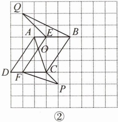 (2)如图②,$P$,$Q$ 也为网格线的交点,连接 $PC$,$PF$,$QB$,$QE$。①$\triangle BEQ$ 与 $\triangle PCF$ 相似吗?若相似,请用两种不同的方法证明;
