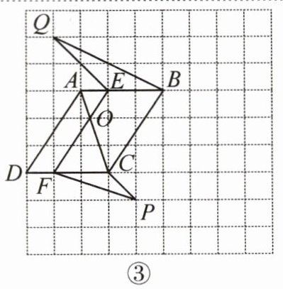 $^{\circ}$。 (3)如图③,以点 $D$ 为位似中心,在网格中画出 $\triangle FCP$ 的位似图形 $\triangle F'C'P'$,使它与 $\triangle FCP$ 的相似比为 $2$。