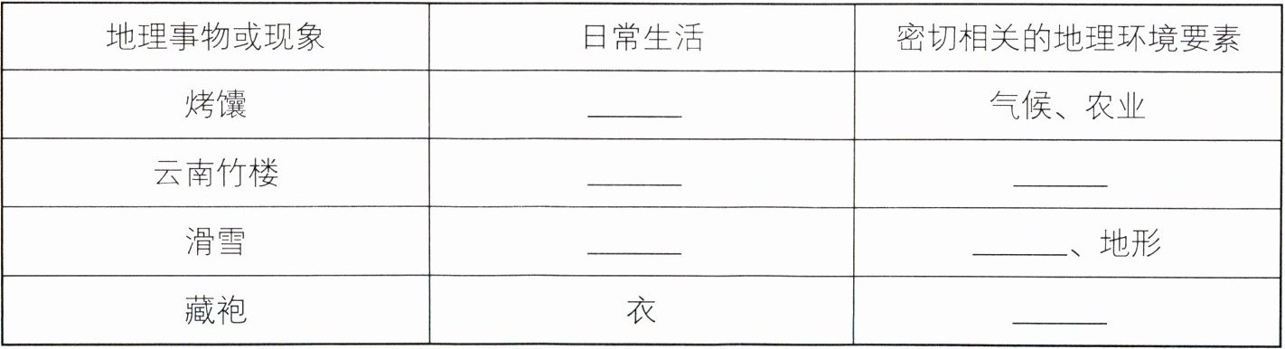 |地理事物或现象|日常生活|密切相关的地理环境要素|