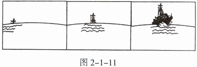 玲玲站在海边,用望远镜看远处驶来的轮船,发现是逐渐看到船身的(图2-1-11)。据此完成4~5题。