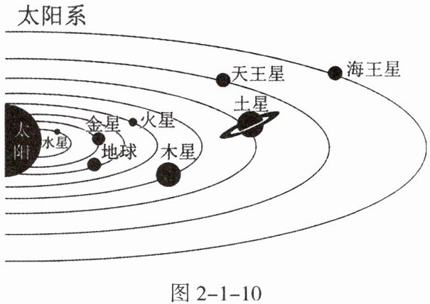 “神舟”载人、“嫦娥”奔月、“祝融”探火、“夸父”逐日,我国航天一步一个脚印向着宇宙深处探索。图2-1-10示意地球在太阳系中的位置。据此完成1~3题。