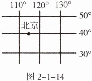 首都北京是我国历史文化名城和古都之一,世界一线城市。图2-1-14示意北京市位置。据此完成11~13题。