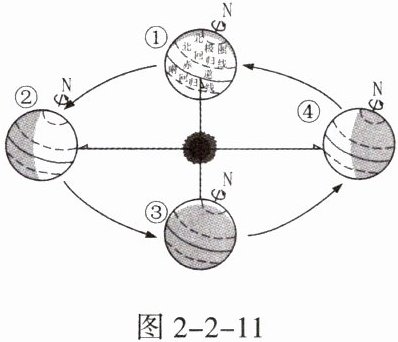 玲玲去黑龙江漠河研学,她发现这里白昼时间很长,超过了 16 小时。图 2 - 2 - 11 示意地球公转。据此完成 10~12 题。