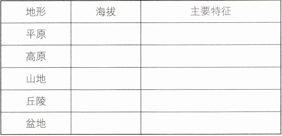 填表总结各种地形的海拔和主要特征: