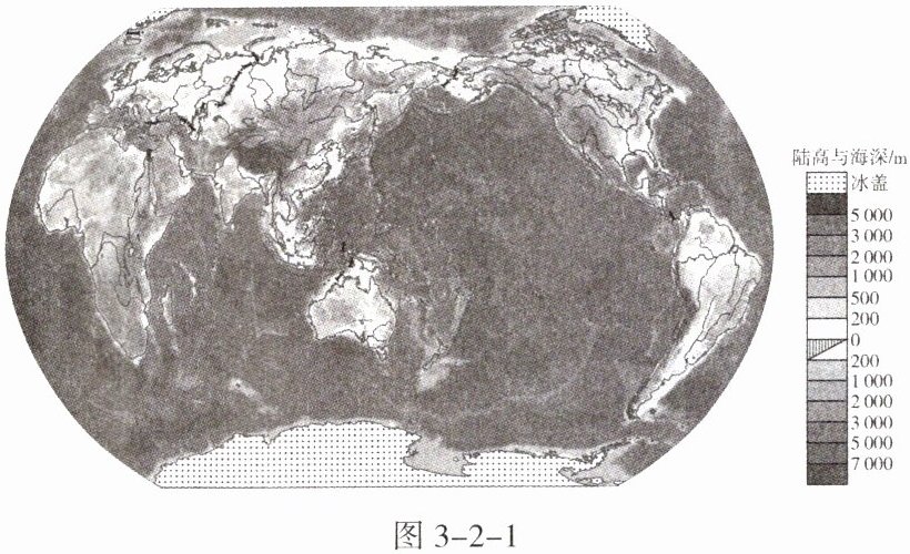 1. 在图中,用不同的符号标注世界主要平原、高原、盆地、山脉、海沟等的位置。
