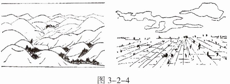 陆地表面的地形丰富多样,有的平坦辽阔,农田广布;有的崎岖绵延,风景优美。图 3 - 2 - 4 是两类地形的素描图。据此完成 3~4 题。