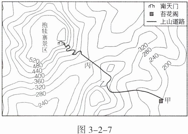 抱犊寨风景区是一处集历史人文和自然风光为一体的名山古寨,有“天下奇寨”“抱犊福地”之誉。图 3 - 2 - 7 是抱犊寨所在区域等高线地图(单位:米)。据此完成 10~12 题。