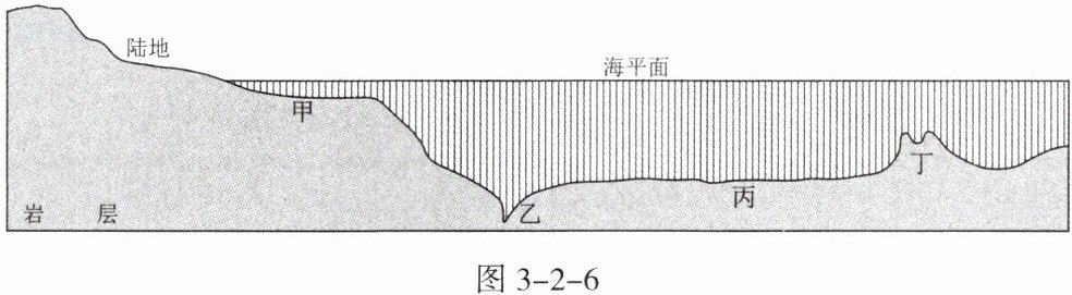 由中国自行设计、自主研制的“蛟龙”号载人潜水器,曾在太平洋马里亚纳海沟创造了 7062 米的中国载人深潜纪录,是世界同类潜水器的最大下潜深度。图 3 - 2 - 6 是海底地形示意图。据此完成 8~9 题。
