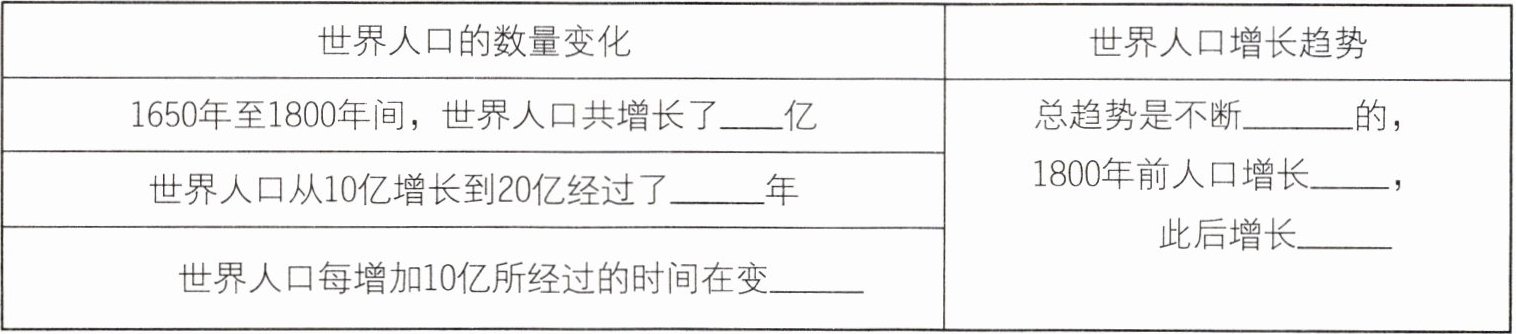 |1650年至1800年间,世界人口共增长了____亿|总趋势是不断____的,1800年前人口增长____,此后增长____|