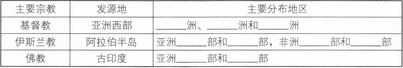|基督教|亚洲西部|______洲、______洲和______洲|