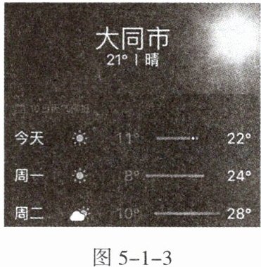 贝贝计划前往大同市旅游,出发前查询了大同市未来两天的天气状况。图5-1-3示意大同市天气状况。据此完成3~4题。