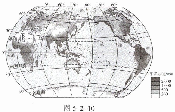 D. 赤道附近降水量少