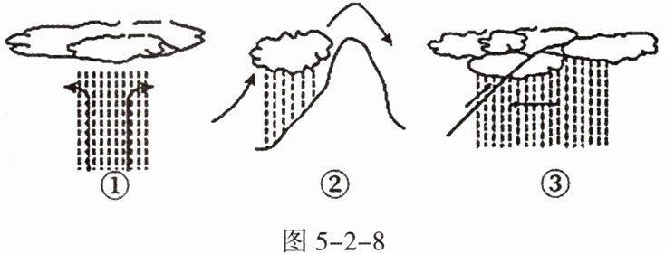 依据降水形成过程中空气上升的原因和形式,降水可分为三种类型。图5-2-8示意三种降水类型。据此完成6~7题。