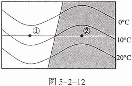 同一纬度的海洋和陆地存在着明显的气温差异,①地位于海洋,②地位于陆地。下图示意世界某区域气温分布。据此完成14~15题。