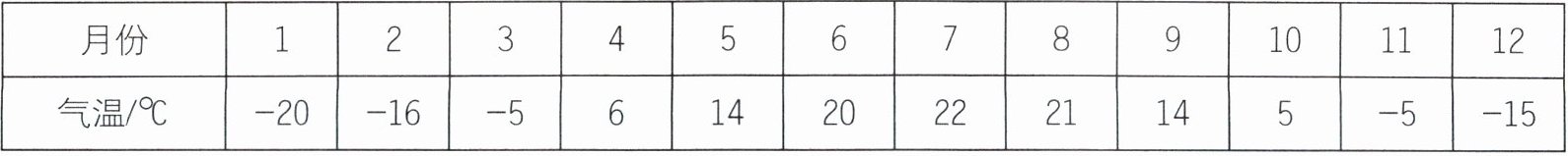 |气温/°C|-20|-16|-5|6|14|20|22|21|14|5|-5|-15|