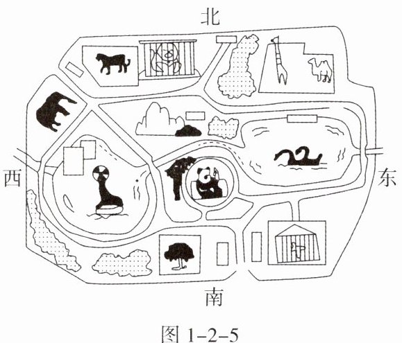 张华一家在游览某动物园时,在入口处发现一幅示意图(图 1-2-5)。据此完成 7~8 题。