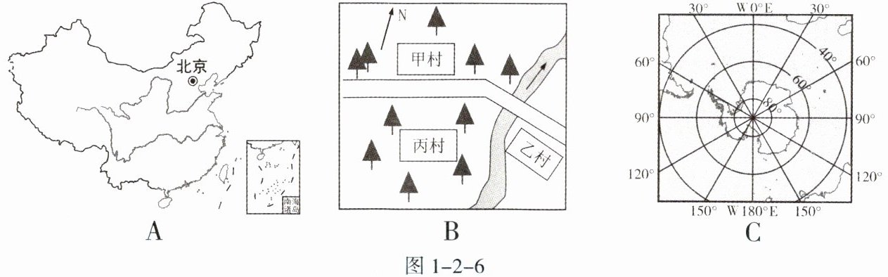 (2)图 1-2-6 中______图是政区图,______图是经纬网地图。