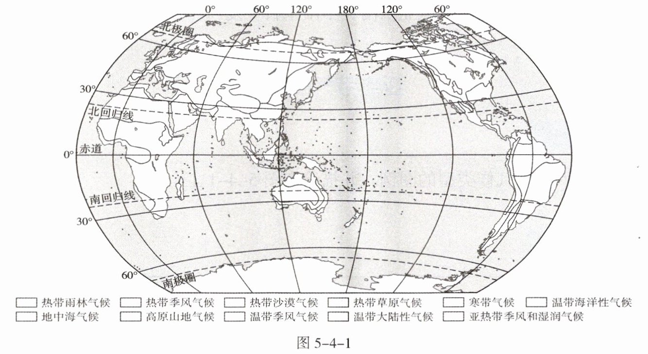 设计热带四种气候类型的图例,并描绘在世界气候类型填充图上。