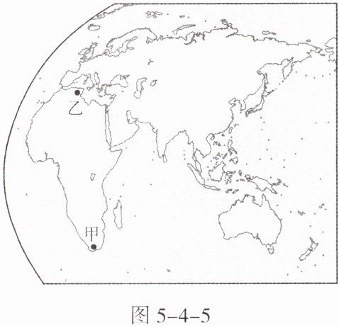 世界气候的分布很神奇,虽相隔万里,也可能气候类型是一样的。图 5-4-5 示意世界局部地区。据此完成 7~9 题。