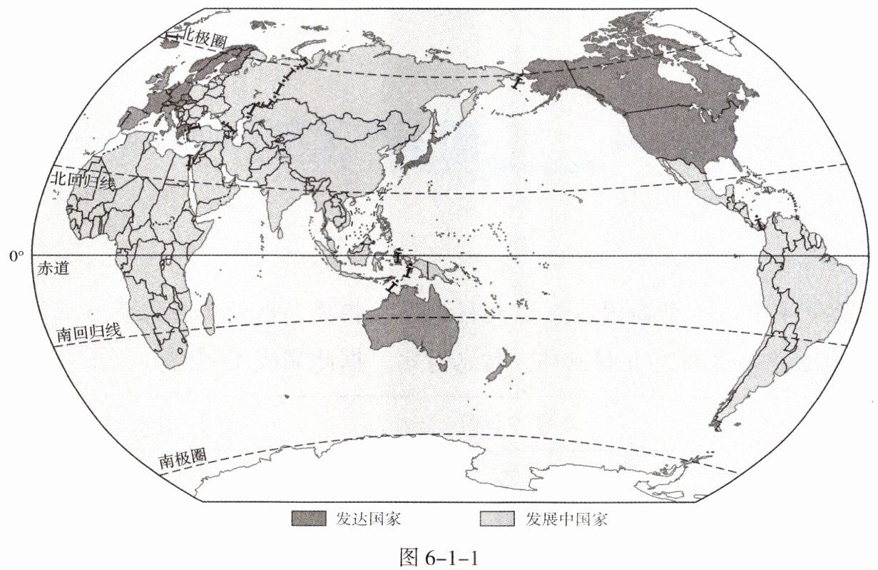 在图 6 - 1 - 1 中标出中国、巴西、埃及、美国、澳大利亚、德国。